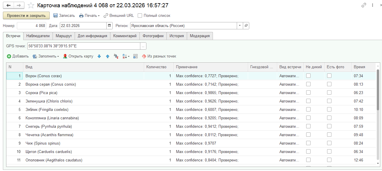 - Наиболее ценный сценарий — связывать данные устройства с проверенными карточками наблюдений. В этом случае подтверждается сам факт присутствия вида в конкретной связке «дата + устройство + вид птицы». Такой блок данных становится существенно надёжнее и лучше подходит для последующего анализа, построения выборок и интерпретации результатов.